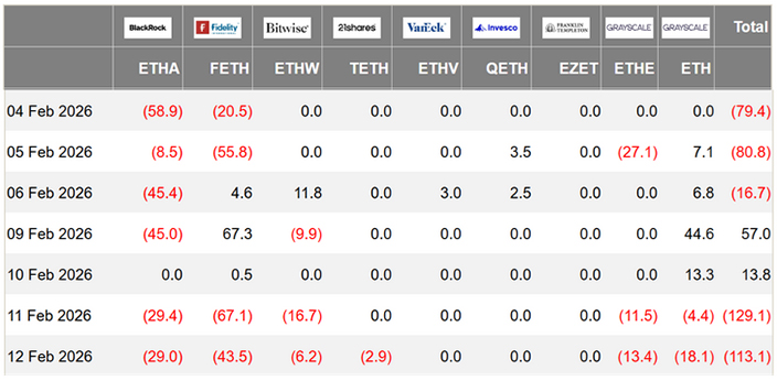 صندوق‌های ETF اتر فهرست‌شده در آمریکا بین چهارشنبه و پنج‌شنبه ۲۴۲ میلیون دلار خالص خروج سرمایه داشتند. و روند صعودی دو روز قبل را معکوس کردند. تقاضای موسسات پس از افزایش ۲۰ درصدی قیمت اتر از کف ۱,۷۴۴ دلار در ۶ فوریه کاهش یافته است. زیرا سرمایه‌گذاران با مشاهده ناپایداری رشد اقتصادی آمریکا—که از افزایش تقاضا برای اوراق قرضه کوتاه‌مدت دولتی مشهود است—احتیاط بیشتری به خرج داده‌اند.